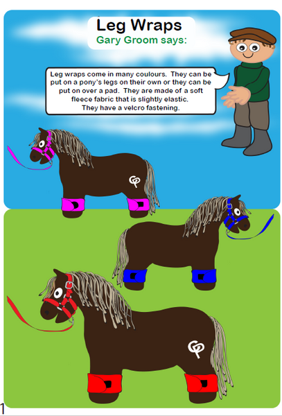Children can learn and practice how to put the leg wraps on and take them off the correct and safe way just like on a real pony!