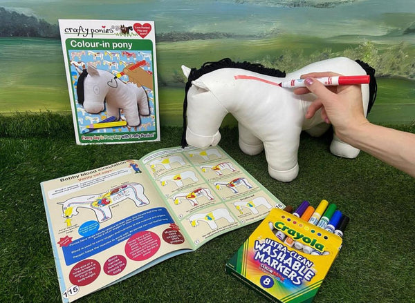 Our unique Anatomy Colouring Crafty Pony with wipe off leatherette body and cotton mane will keep your child enchanted while learning real horse anatomy!